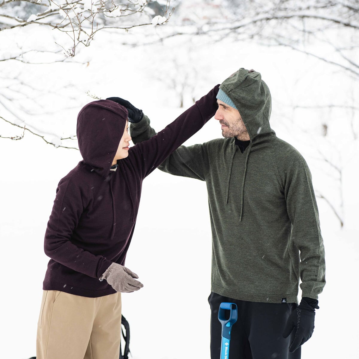 もはや山でも市民権を得てきたメリノウール。贅沢に100%使用してフーディを作りました。