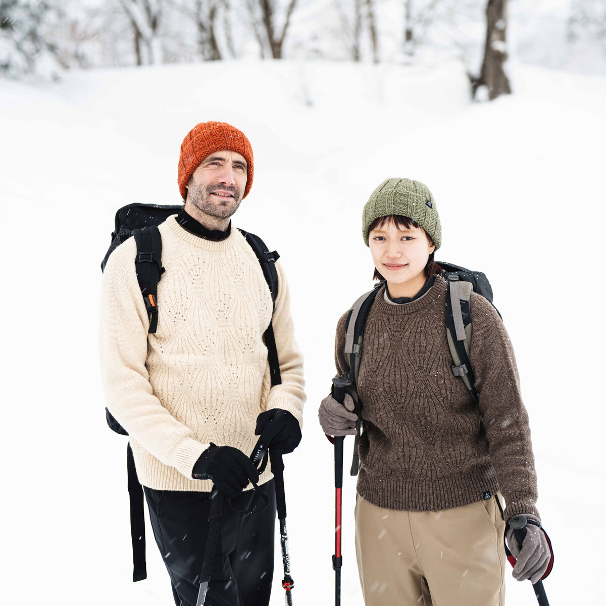 フリースができる前まではミドルレイヤーとしてはセーターが一般的でした。機能面考えると、保温性など考えれば、実際は納得の理屈。実際新潟の里山だと、いまだにスキーセーターで登ってらっしゃる先達が多くいらっしゃる印象です。タフですよね、、、