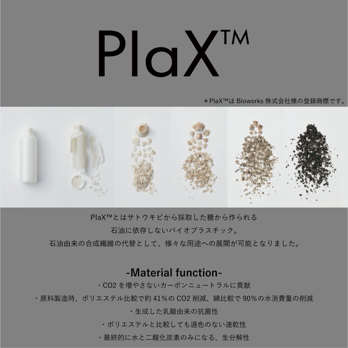 こういったベンチャーの物であったり、何かを変えることができる素材を市場に浸透させるのは消費者の協力なくては成しえません。みんなで育てるつもりでトライしてほしい。なんて思っております。いつかポリエステルに取ってかわる可能性のある素材と思っています。ぜひ一足先に未来に触れてみてください。