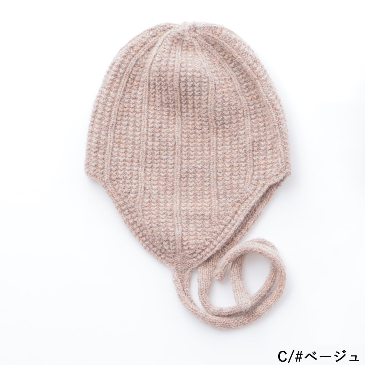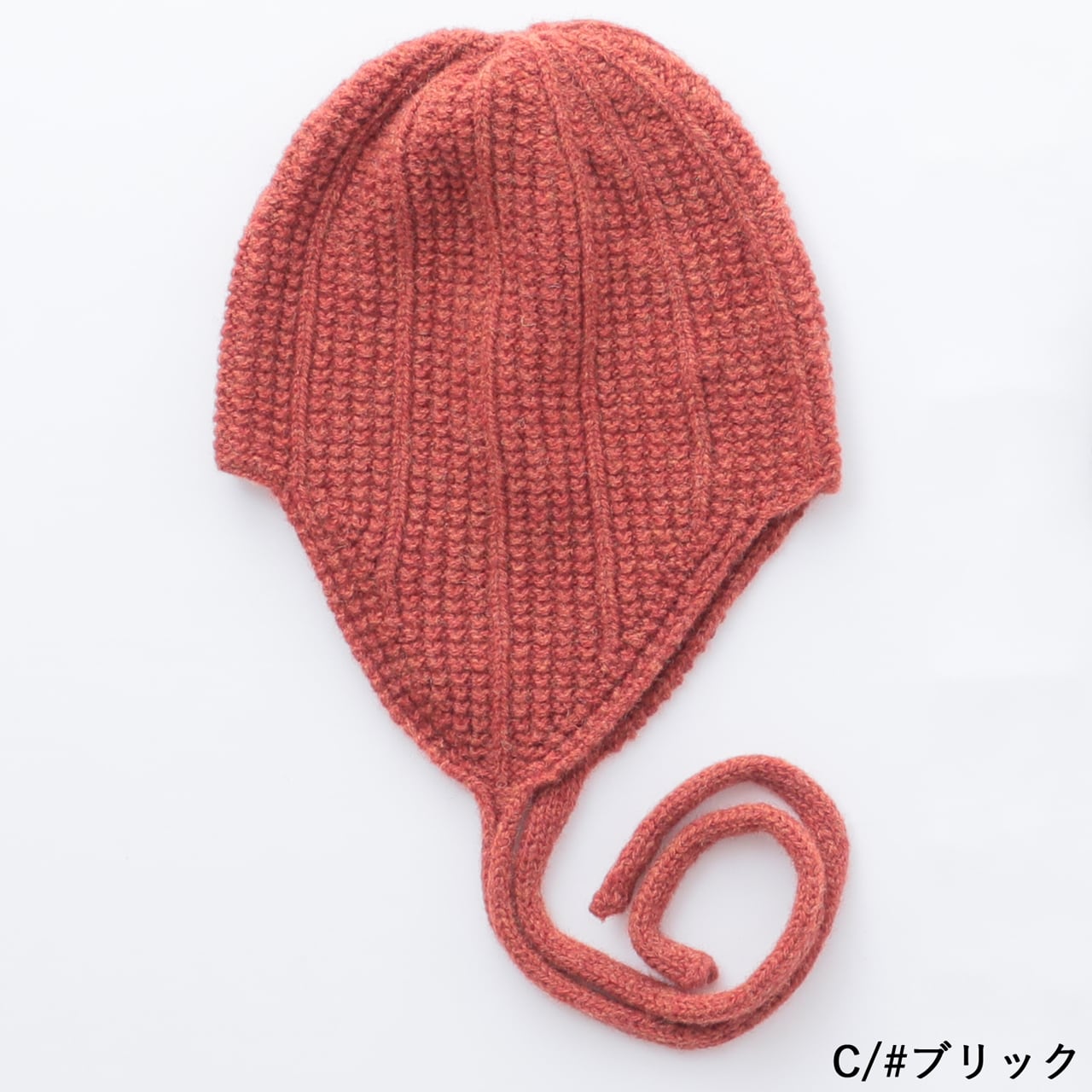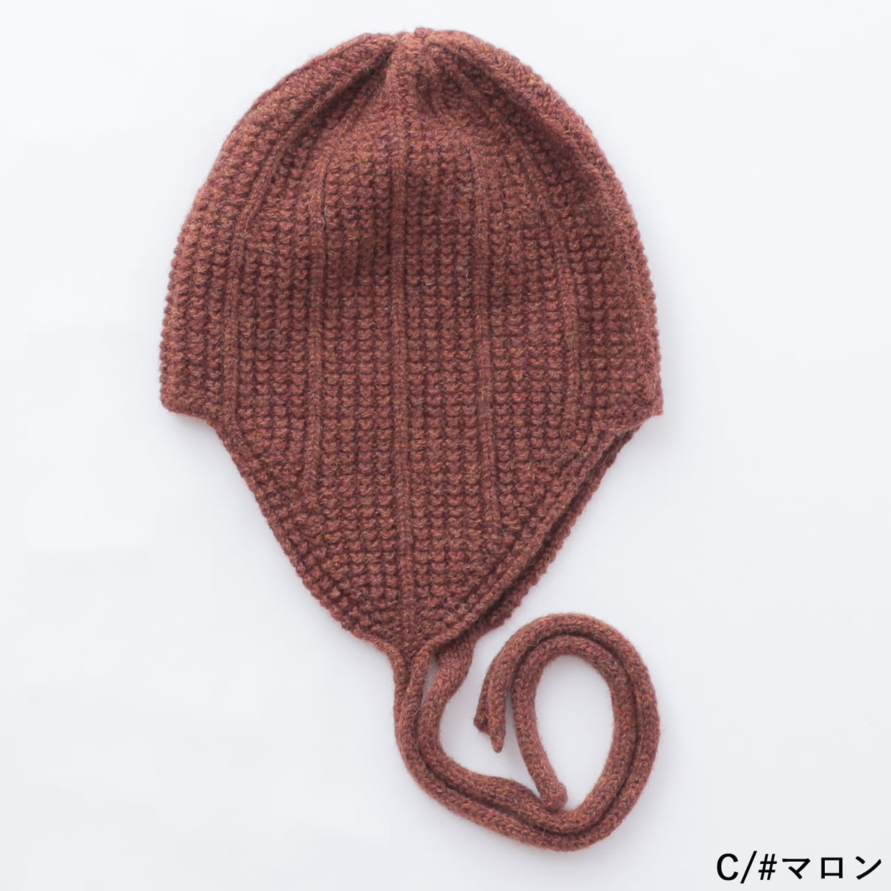 寒い日に嬉しい、編み続きの耳当て付きニット帽です。