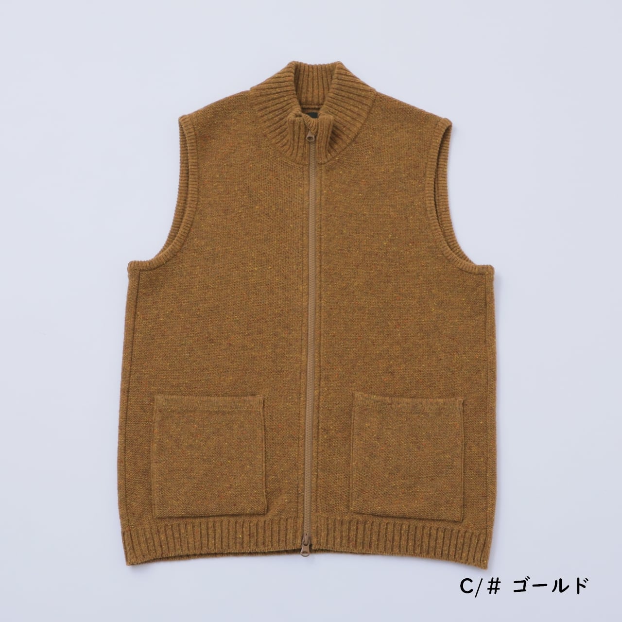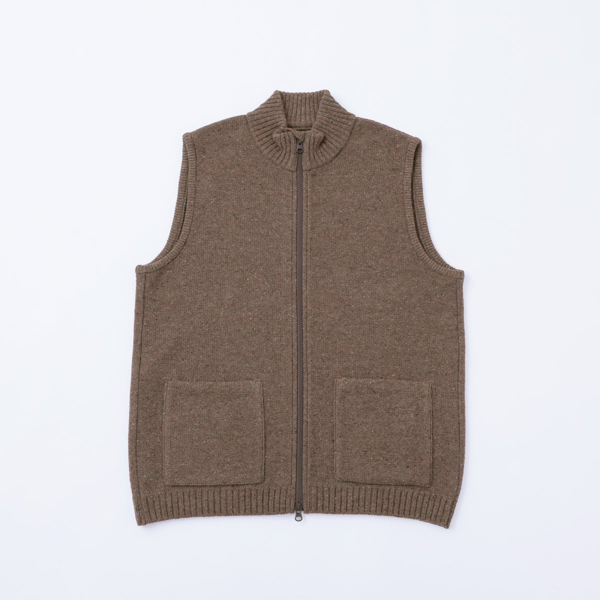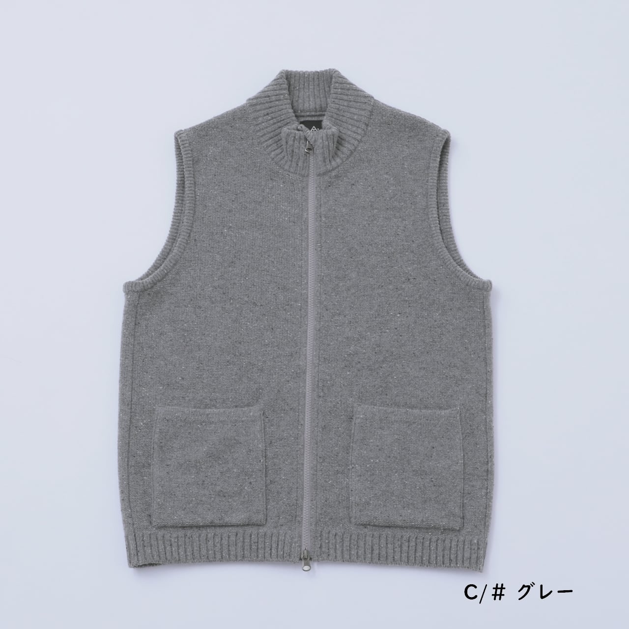 表情のあるネップ糸に、敢えての裏目使いをすることでより風合いの活きたニットベスト。
